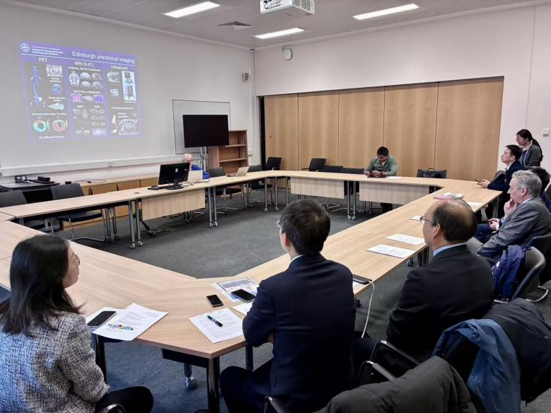 At the University of Edinburgh, the delegation visited advanced medical imaging facilities and held in-depth discussions with Professor Joanna Wardlaw and Professor Paul Brennan. The two sides identified complementary strengths in brain tumor research, traumatic brain injury, cerebrovascular imaging, and liquid biopsy technologies, and agreed to advance joint research, shared training, and translational cooperation.